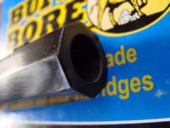 tapers to .710 inch at the muzzle. The barrel is drilled and