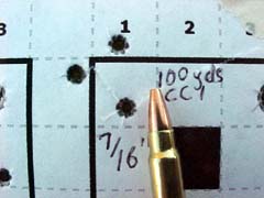 HMR cartridge. The Model 97 action has a hammer-mounted transfer