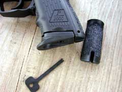 The P2000 SK can use the longer thirteen-round P2000 magazines,