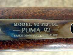 shown here as a Puma 92 Bounty Hunter pistol, and doing so by