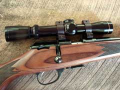 2 to 7 power compact rimfire scope in Leupold Rifleman rings.
