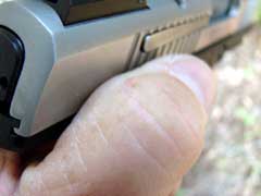 cleanly. Atop the slide is a loaded-chamber indicator that is