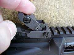 bayonet lug. The rear sight is a fold-down A.R.M.S.