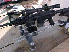 wears a closed-bottom flash suppressor at the end of its sixteen
