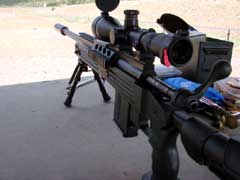 shoulder. The muzzle brake, along with the rifle’s weight of