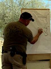 Once the pistols zeroed, and all shooters familiarized, we began to run drills for the next two and a half days following the USCCA Defensive Pistol Program (DPP). The labor of love of Steve Hendricks at USCCA, this is relatively new program introduced last year. In fact, I had the pleasure of being one of the very first students through the program in its very first course offered last year. DPP focuses on concealed carry and drills are to be done from concealment.