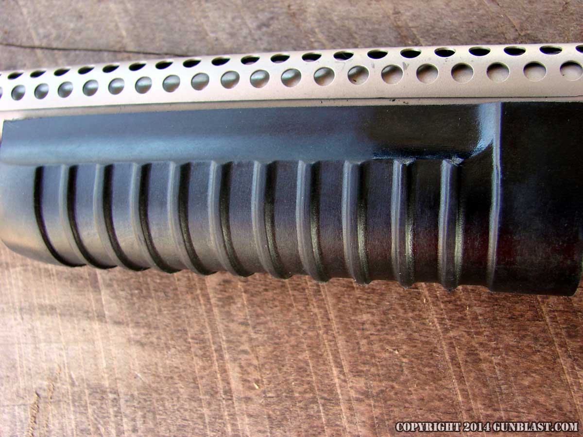 synthetic rubber butt pad. The forearm is heavily grooved for a