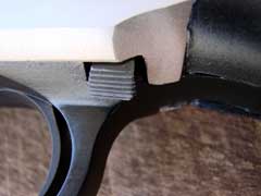 Top to bottom: crossbolt safety, slide latch, disassembly pin.
