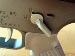 adjustable to fit the shooter. The AR-style thumb safety can be