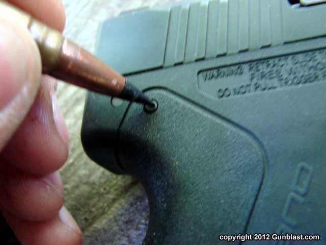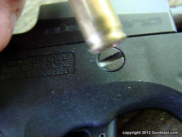 Disassembly is easy, requiring a pointed object to decock the striker, and a cartridge rim to turn the latch.