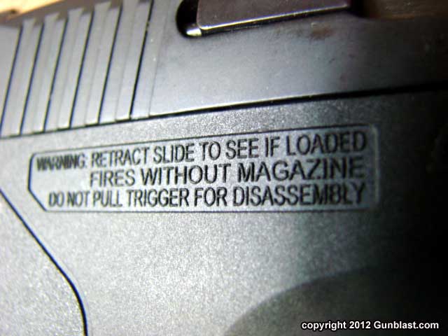 for disassembly. At the right rear of the slide, just in front