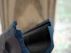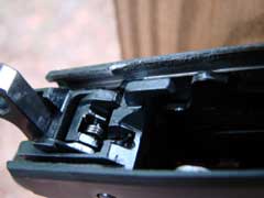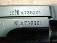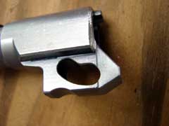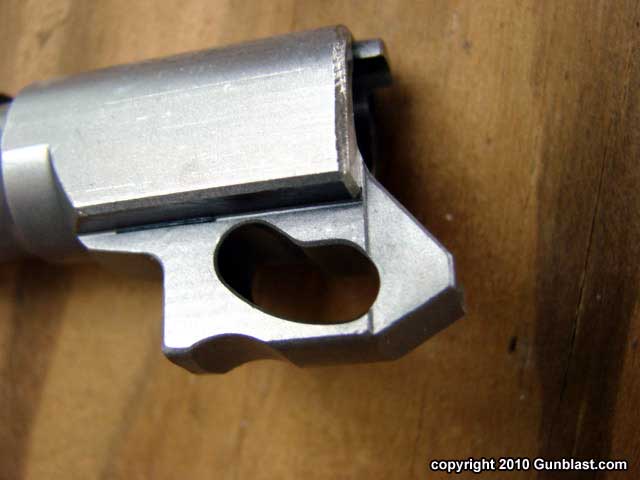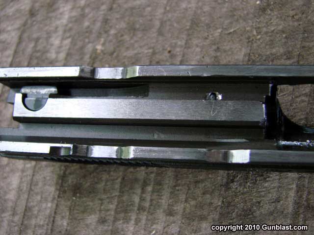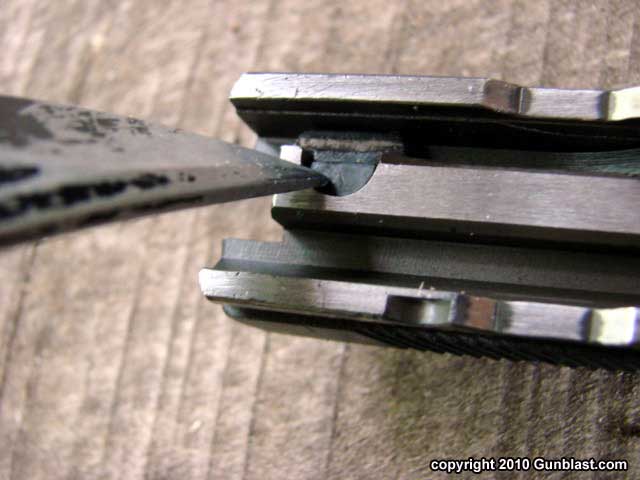 below the barrel through which the slide latch pin passes. The