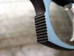 serrated for the placement of the forefinger of the support