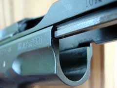 The 75B also has a flat-front trigger guard that is laterally
