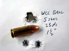 target set at twenty-five yards. Group sizes are listed in