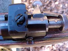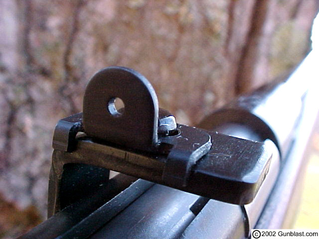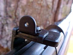 Rear aperture sight on the .22 LR Chipmunk is a simple