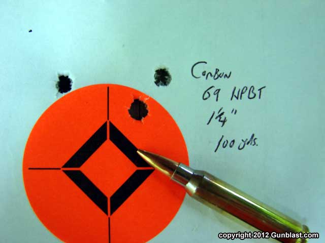 rifle/ammo combo. From a solid rest, it eliminates most of my