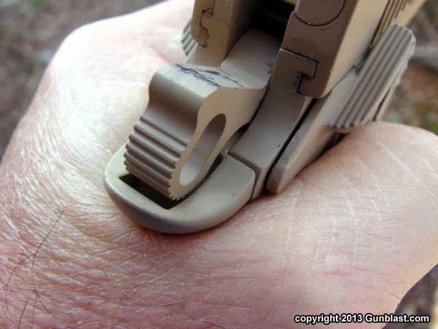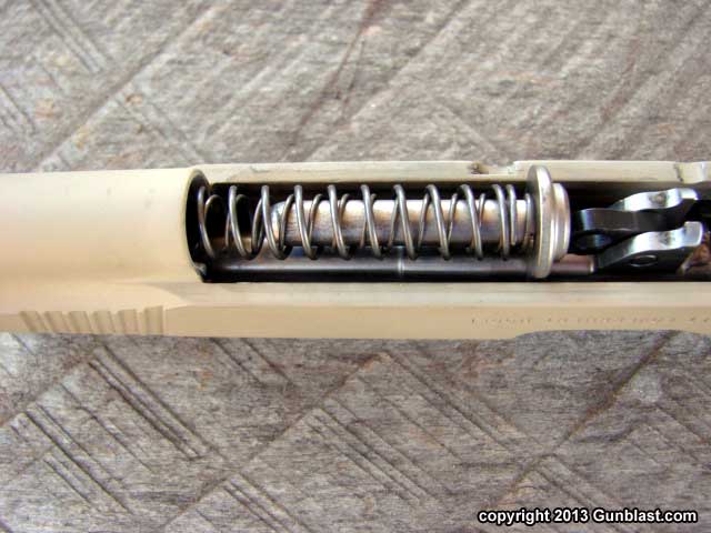 steel and wearing a tan Cerakote finish to reduce glare, the