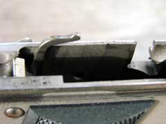 in the “on safe“, upward position. The hammer has a “shelf”,
