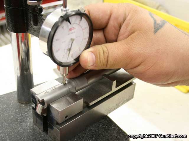 gauging the lug depth on 1911 barrel. Quality assurance is a