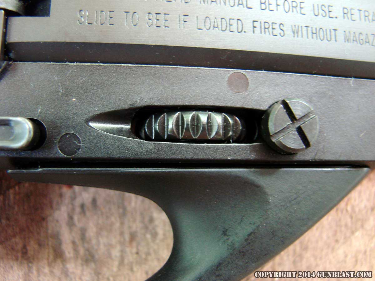 with one magazine instead of two, has different sights and