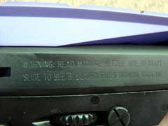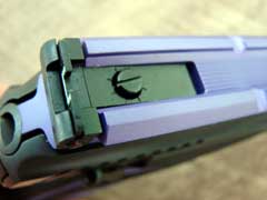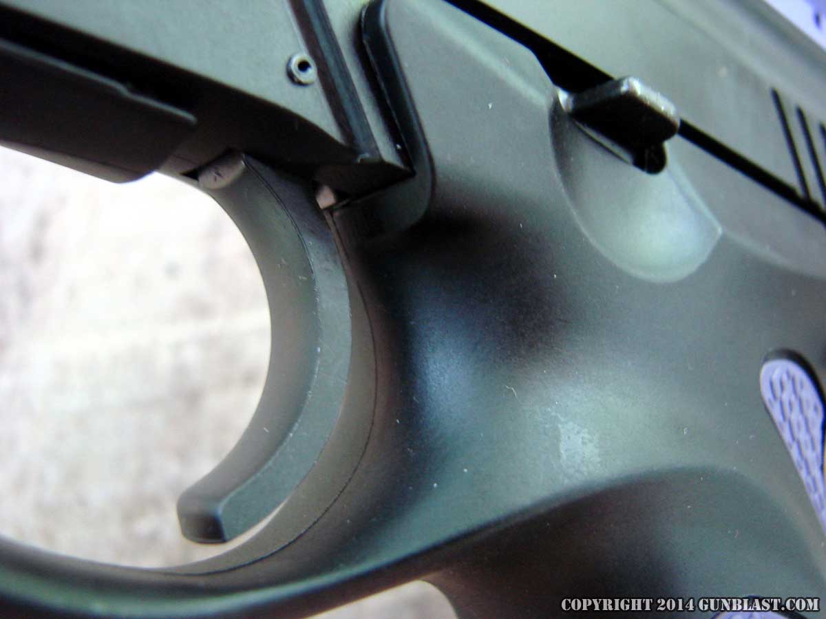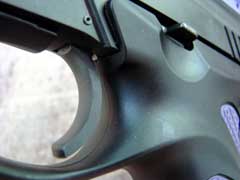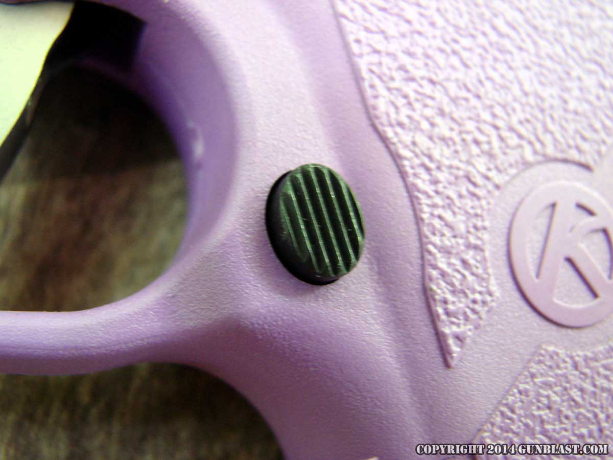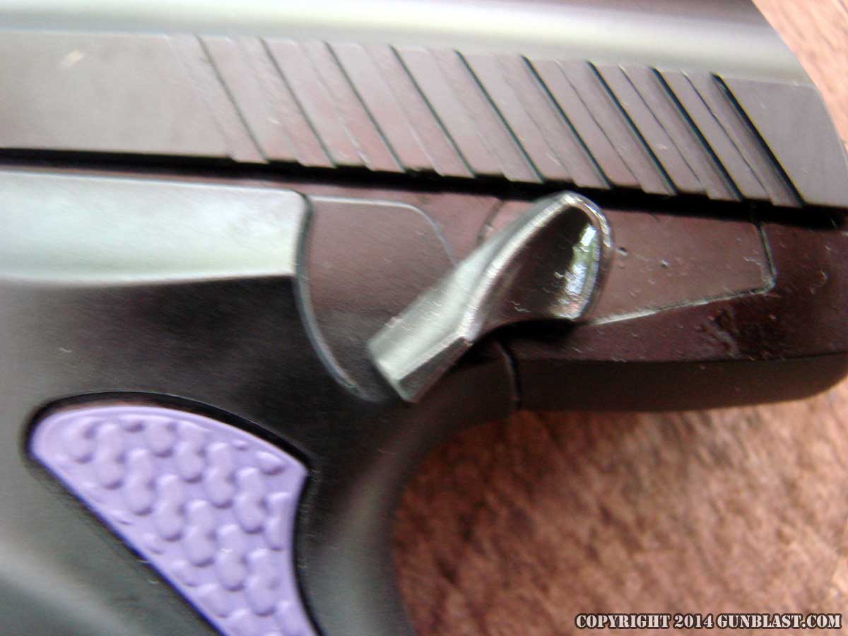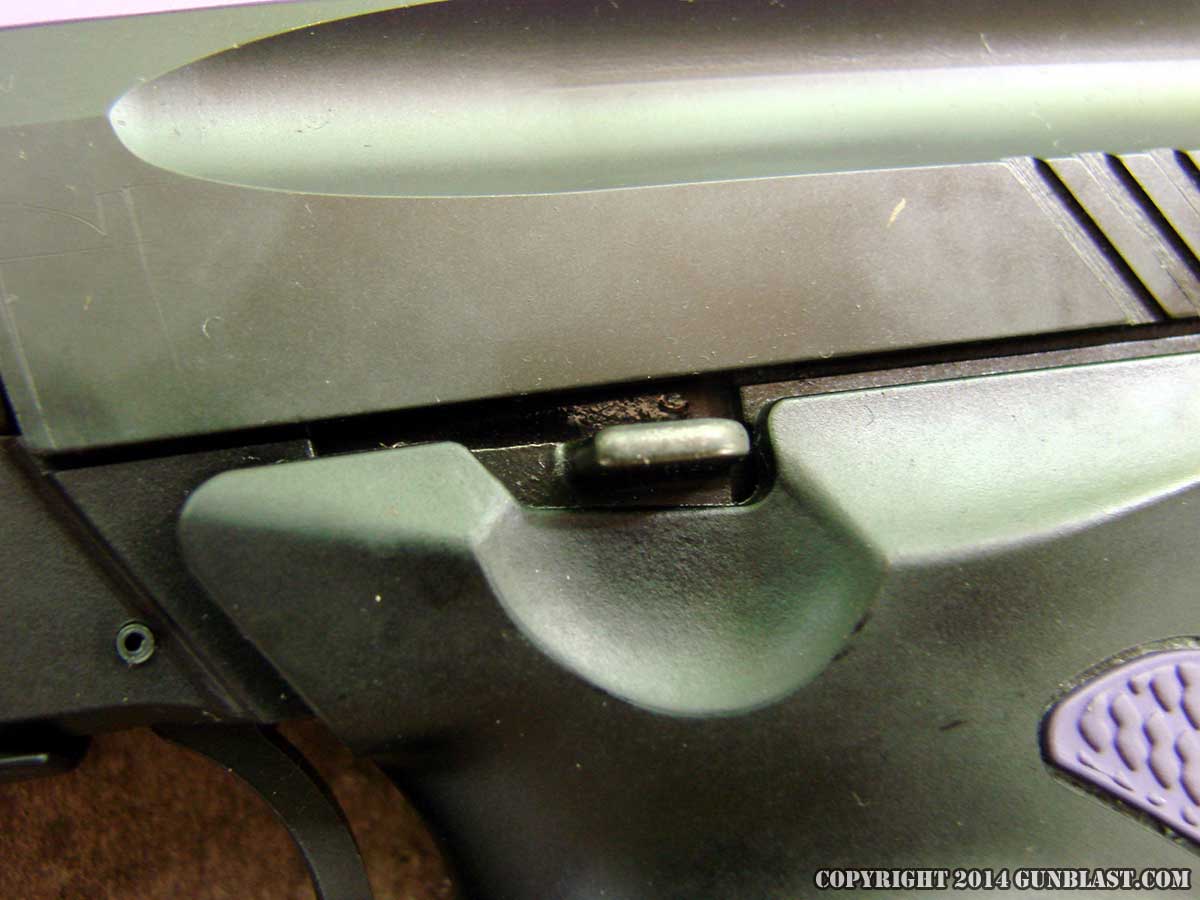 Magazine release (top), slide lock (bottom).