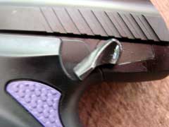 Beretta has purple grip inserts, as well as a purple rail atop