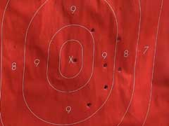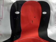 Seven-shot group, fired standing offhand at fifteen yards.
