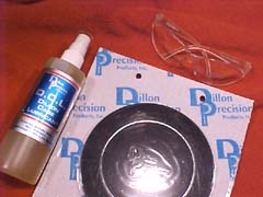 safety glasses, and Dillon's primer flip tray, which the