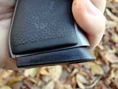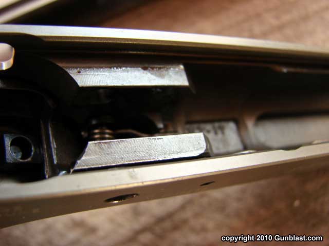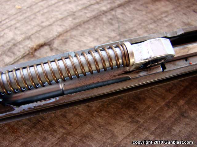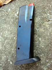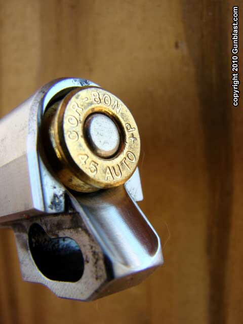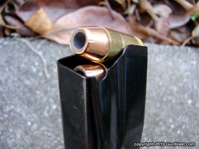 and in the 45 ACP version shown here, holds ten cartridges, for