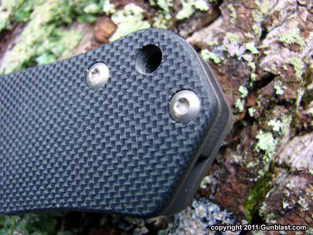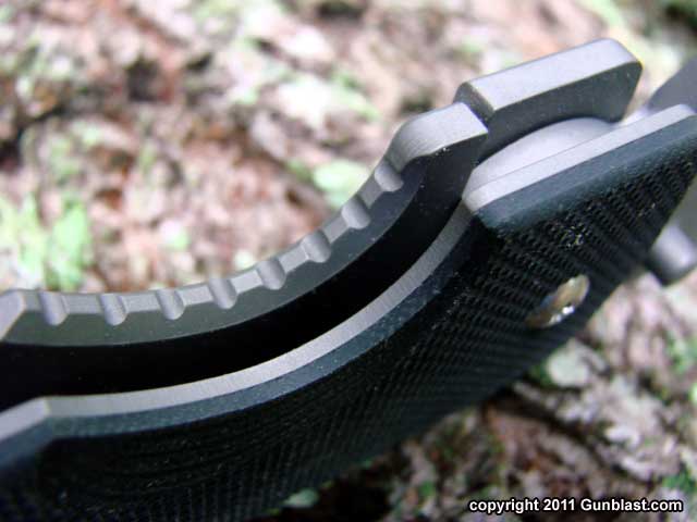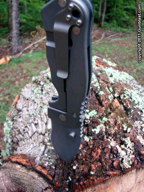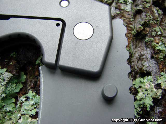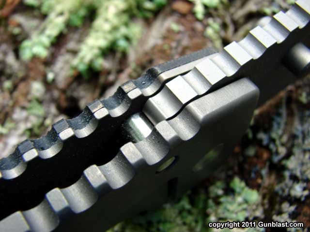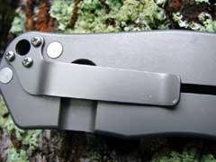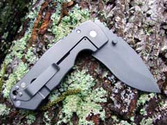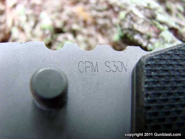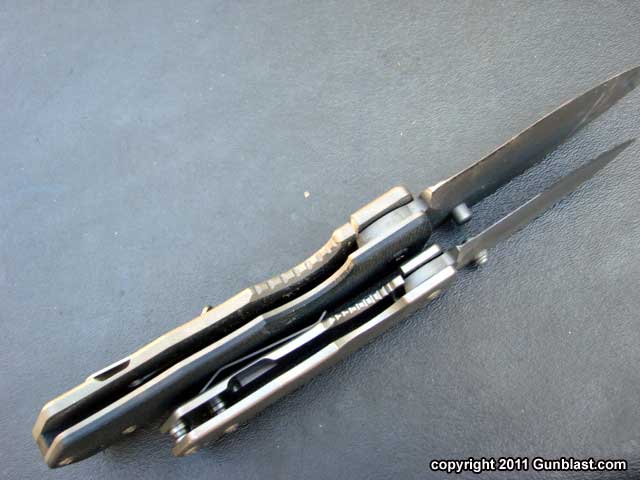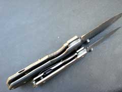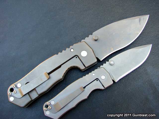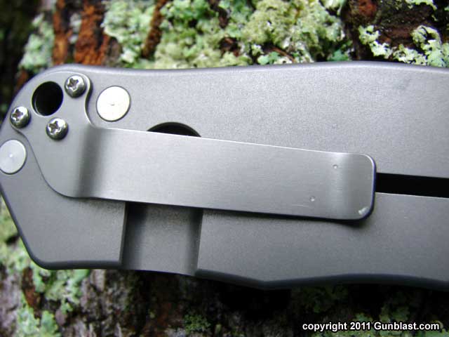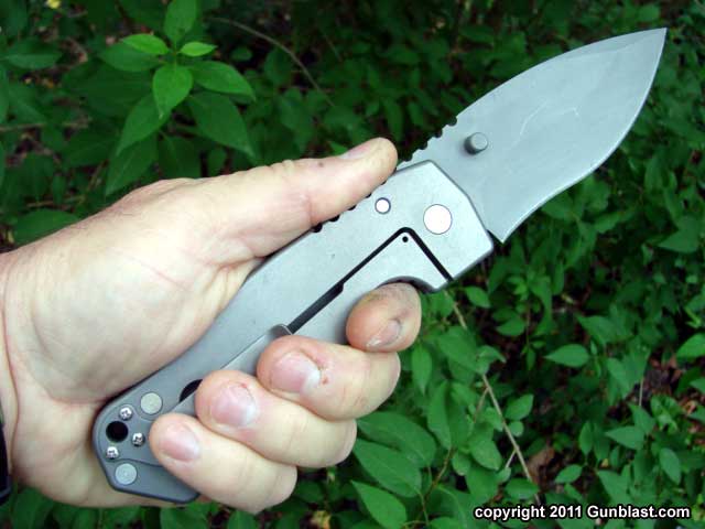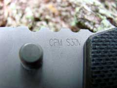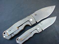 its titanium handle. The blade is CPM S30V, treated to a 59