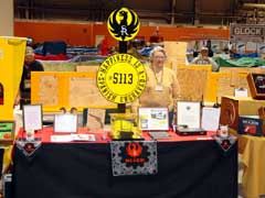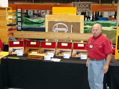 Russ’ first display ever sure impressed the Show Promoter’s judges; he tied with Master displayer Jim Schafer for the Most Educational display award! His theme followed R.L. Wilson’s book, Ruger and His Guns. Russ displayed thirty-three different Ruger handguns that were major designs as set out in the book. This included an early Salt Cod box and Standard Auto and a Charles H. Jerred factory engraved Single-Six. A time line chart was displayed depicting these major designs from 1949 – 1993. This was a great display for the collectors and general public as well. Books and other documents were also shown. We all gathered