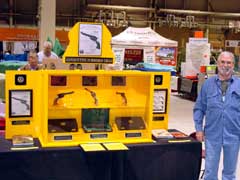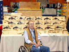 Lee’s outstanding display contained some very rare “Complete Packaged” old model guns that are so very hard to obtain by collectors. Several factory brass framed guns, a single digit Hawkeye #5, and a number of Blackhawk .45 Colts were included. All of the packaging was very crisp. Lee stated that it was his intent to help educate the public about the proper packaging of the old model guns and the contents of each package. Examples of model numbers with the corresponding owner manuals, dates, warranty cards and inserts were shown for this “education” purpose. “EARLY CASED SUPERS”