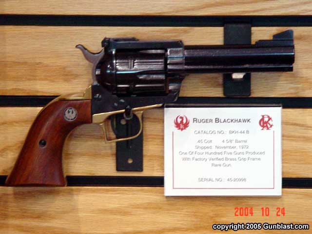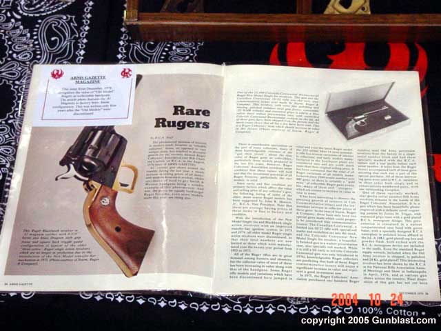 CLASS OF BRASS , by Lee Sundermeier1ST PLACE RCA ADVANCED1ST PLACE TULSA SHOWLee’s fantastic display included a mint condition example of all the calibers and barrel lengths of factory assembled Brass grip frame single actions. The guns are all boxed and some had their original shipping cartons. Also exhibited were examples of the extremely rare factory gold and brass tone XR3 and XR3-RED grip frames. Lee believes that these had an influence on the company which resulted in the production of the solid brass MR3-DB, dragoon-style frames. (click pictures for a larger version) Page 2Page 1Page 3Page 4Page 5Page 6Got something to say about this article? Want to agree (or disagree) with it? Click the following link to go to the GUNBlast Feedback Page. |
