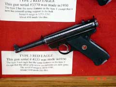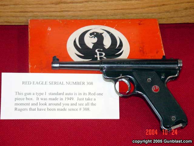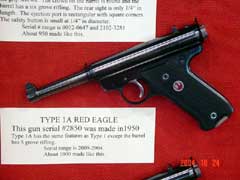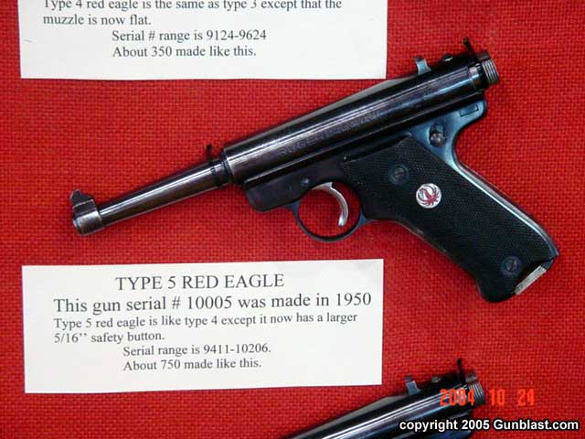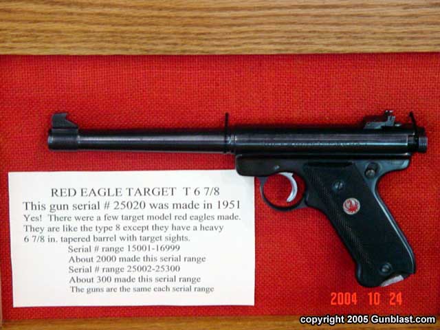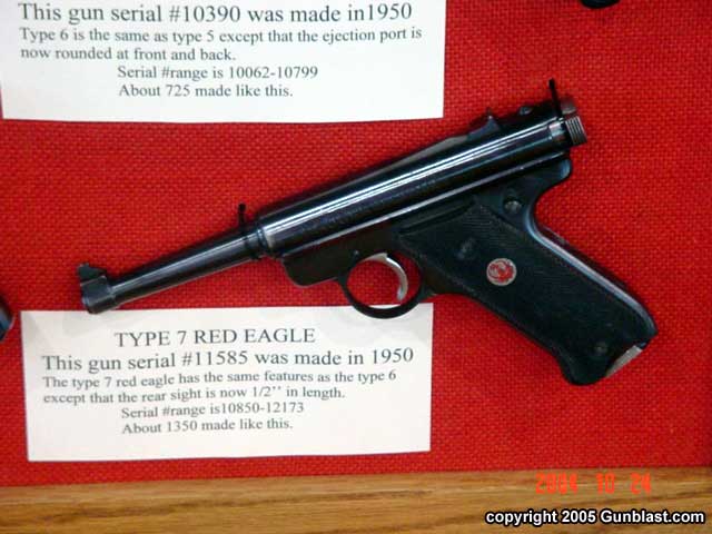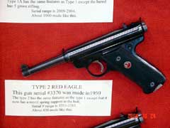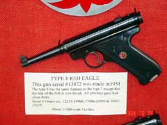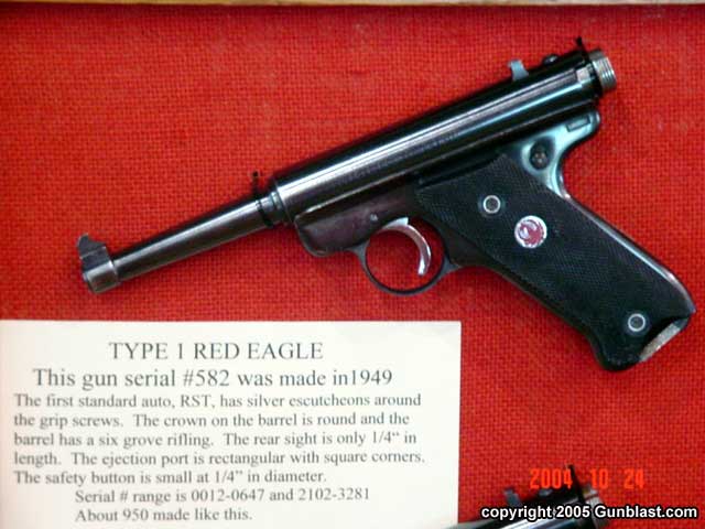 RUGER 1949 – 1951 RED EAGLE AUTOS, by Bob Belknap3RD PLACE RCA ADVANCED (TIE)Bob’s great display had all ten types of the Red Eagle pistols. Also displayed was the extremely rare #10000 Chrome plated Red Eagle, a pre-production gun, a model that was never produced, and # 25020 Target Red Eagle. Each Type, the Type 1, 1A, 2 – 9 all have a change or changes that make it a different variation. Several of these variations are very hard to find and downright rare…especially in the minty condition of the guns displayed. (click pictures for a larger version) Page 4Page 1Page 2Page 3Page 5Page 6Got something to say about this article? Want to agree (or disagree) with it? Click the following link to go to the GUNBlast Feedback Page. |