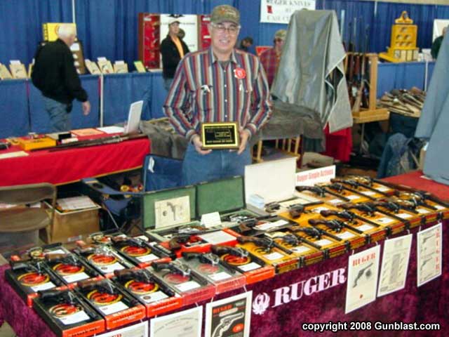 $635 from the raffle for our display fund. We hope that you will plan to attend and hopefully bring a display to one of our future display shows. The upcoming display show location, dates and contacts will be posted on the RCA website. Ask anyone who attends or has attended; you will have a lot of fun!! Bill Hamm The Ruger Collectors' Association is the oldest organization for the Ruger collector and/or enthusiast. Membership includes the Association's sporadically-produced newsletter and invitation to members-only events. For more information (or to apply for an annual membership), write to: Ruger Collectors' Association, Inc., P.O. Box 240, Greens Farms, CT 06436 The Red Eagle News Exchange is a quarterly publication filled with new information, updates, and articles about collecting Ruger firearms and memorabilia. This is an excellent resource for the Ruger collector and/or enthusiast, and the wealth of information sent to new subscribers as a free gift with a paid annual subscription is alone well worth the money. Highly recommended. For more information or to subscribe, write Red Eagle News Exchange (Chad Hiddleson - Editor), 1945 Clover Avenue, Perry, IA 50220, or call (515) 465-2057. Got something to say about this article? Want to agree (or disagree) with it? Click the following link to go to the GUNBlast Feedback Page.