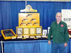 To quote Rod, “Nine old Supers that show some of the many different variations that make Ruger collecting both challenging and fun.” Two of his favorites displayed were the “S” marked 80-prefix gun and the ultra rare 10” barrel gun. Mahogany and white box cases for the guns were displayed. A good friend of Rod’s sold him the 10” gun and made a custom mahogany case for it at Rod’s request which was also displayed. Another Rod quote, “Good friends and good guns just seem to go together!” I agree with Rod and I am already looking forward to our get together in Harrisburg!!