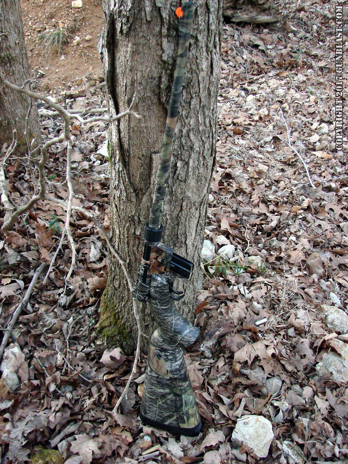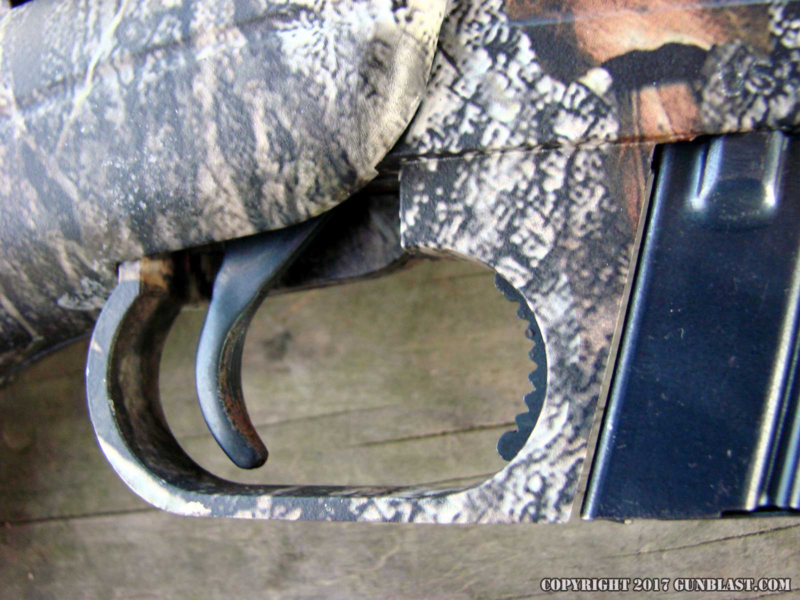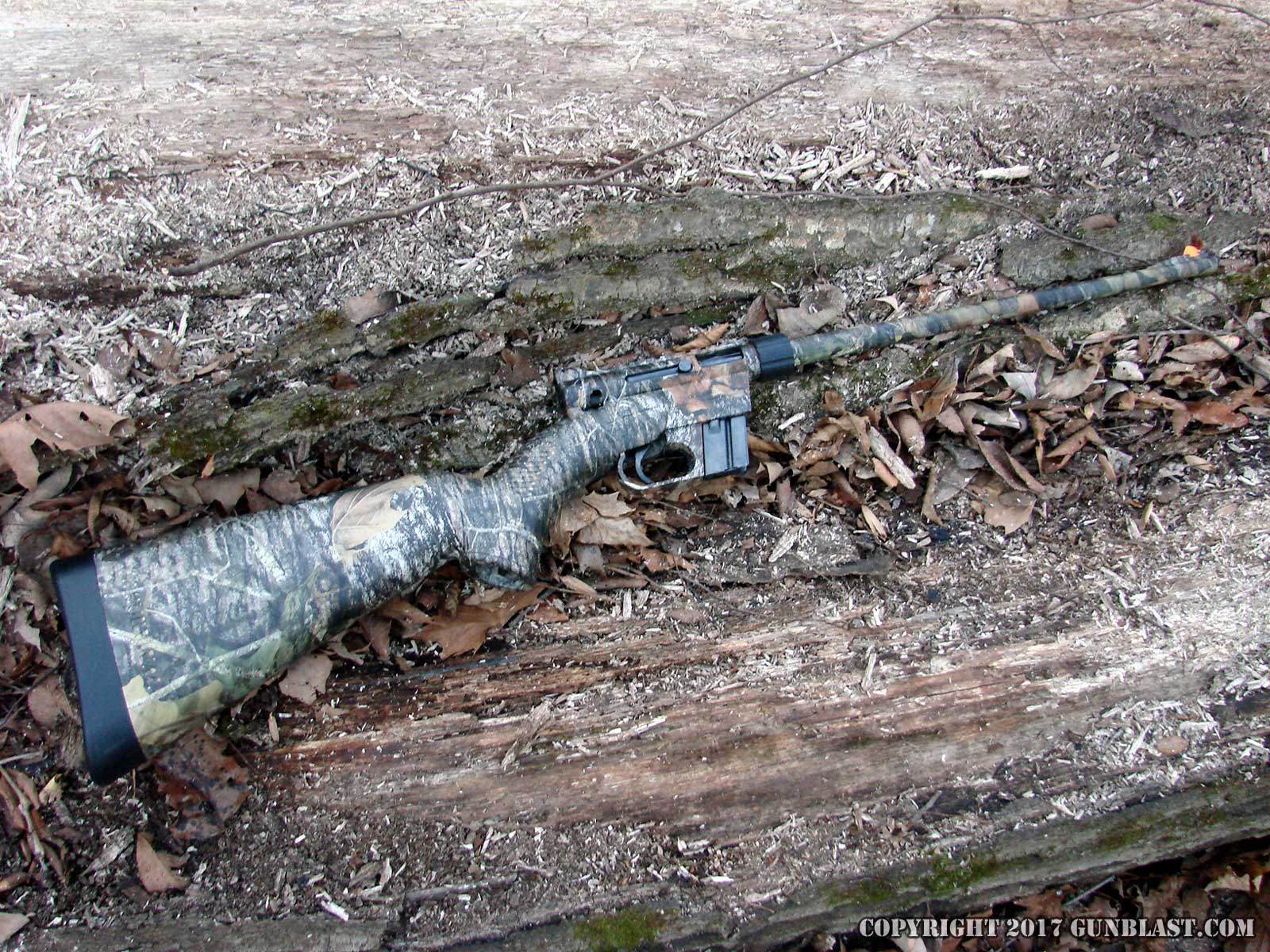 shown here wears a camouflaged finish, but the rifle is also
