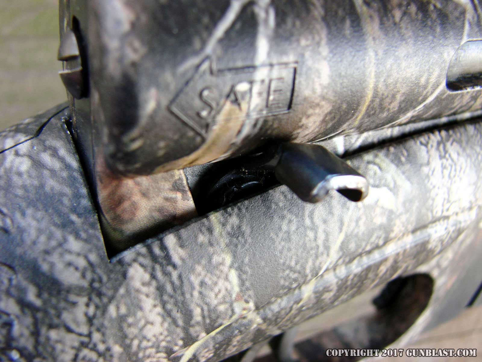 Magazine release (top), manual safety (bottom).