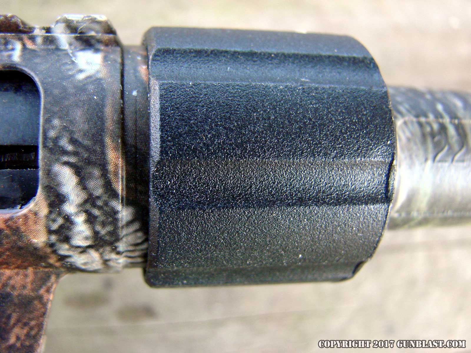 to ABS, for greater durability. The sixteen-inch steel barrel is