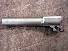 primarily of stainless steel, with a black polymer frame. (Ed.