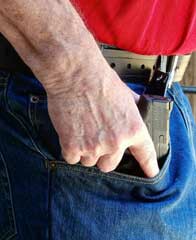 loose and grab the pistol out of the pocket by twisting it as I