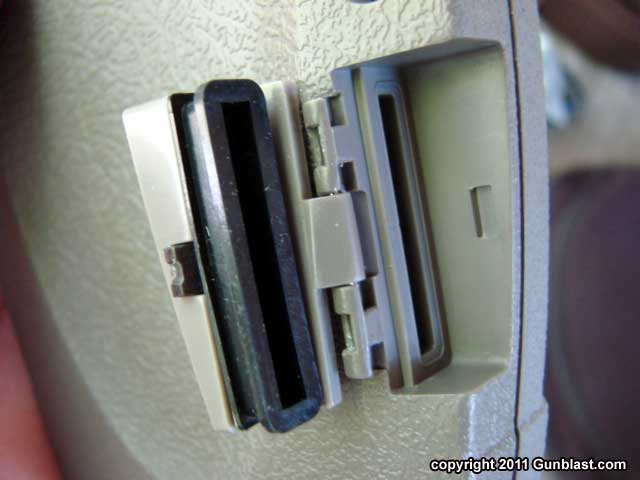 When opened, camera's bottom access door exposes AC