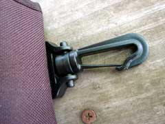 snap-fastener for attachment to a backpack or belt loop. It also
