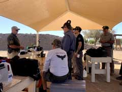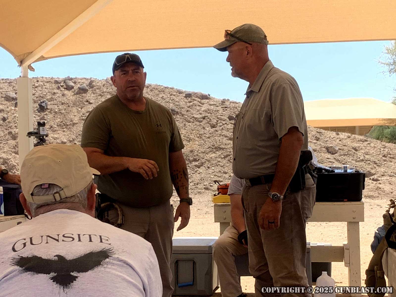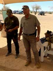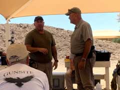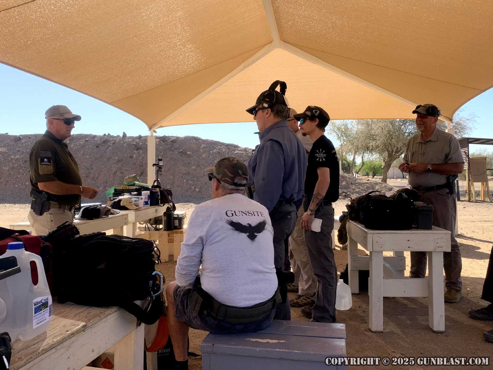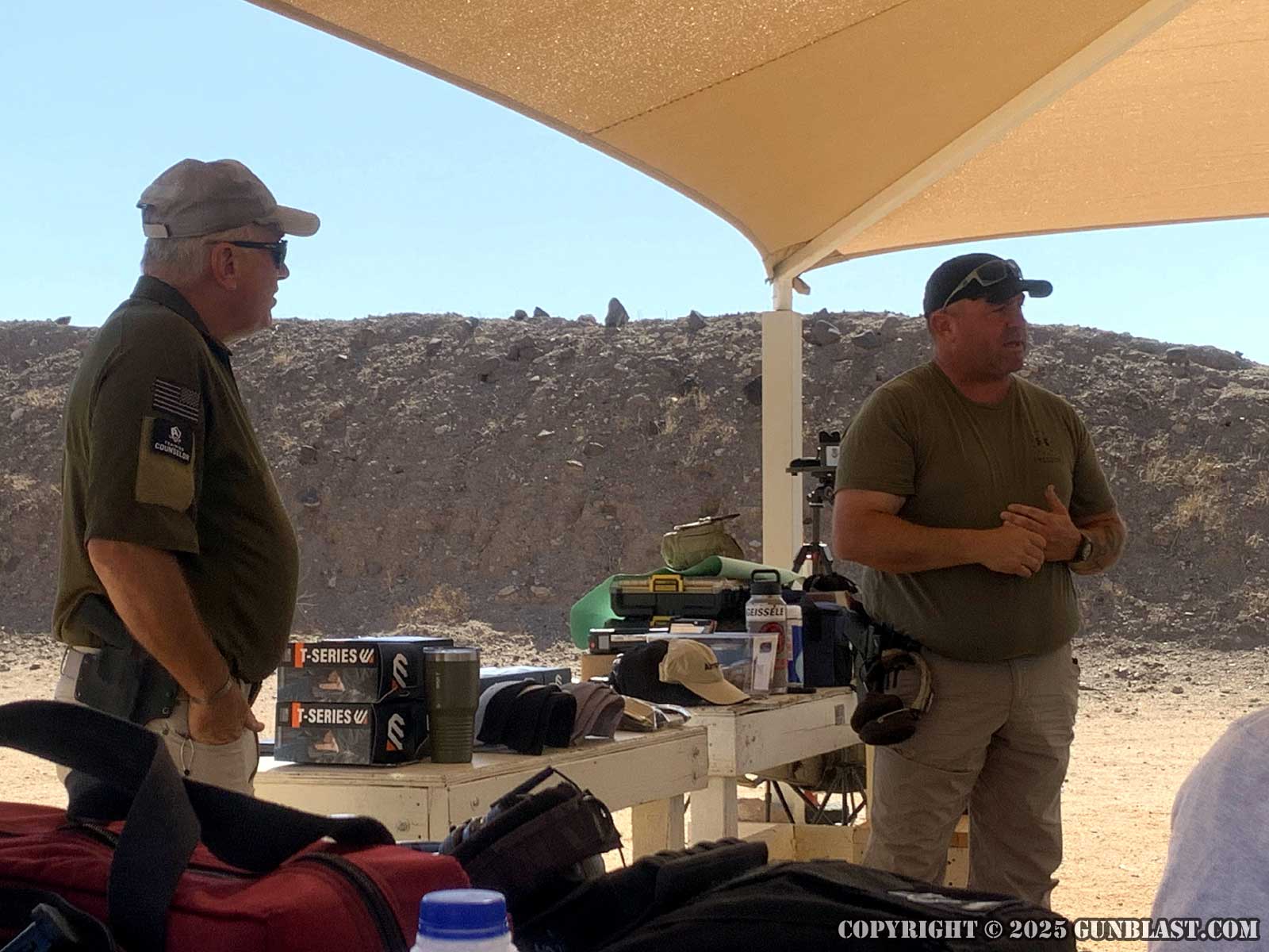 One of the most important steps to a pleasant, and responsible, shooting experience, whether with iron sights or pistol mounted optics, is a proper zero. On the first day, Jim Owens provided some basic instructions and process for zeroing. Jim is a firm proponent of a 25-yard zero and, in fact, has developed his own tripod zeroing device using a Ransom Rest Multi-Caliber rest mounted on a Manfrotto tripod. This gives a very sturdy, stable, yet adjustable, platform for holding the pistol steady and made zeroing the pistols a fairly simple task. Of course, it helps when the Glock pistols are already zeroed at the factory, a nice feature, as three pistols that we checked for zero early before the first day were already zeroed almost perfectly at 25-yards!