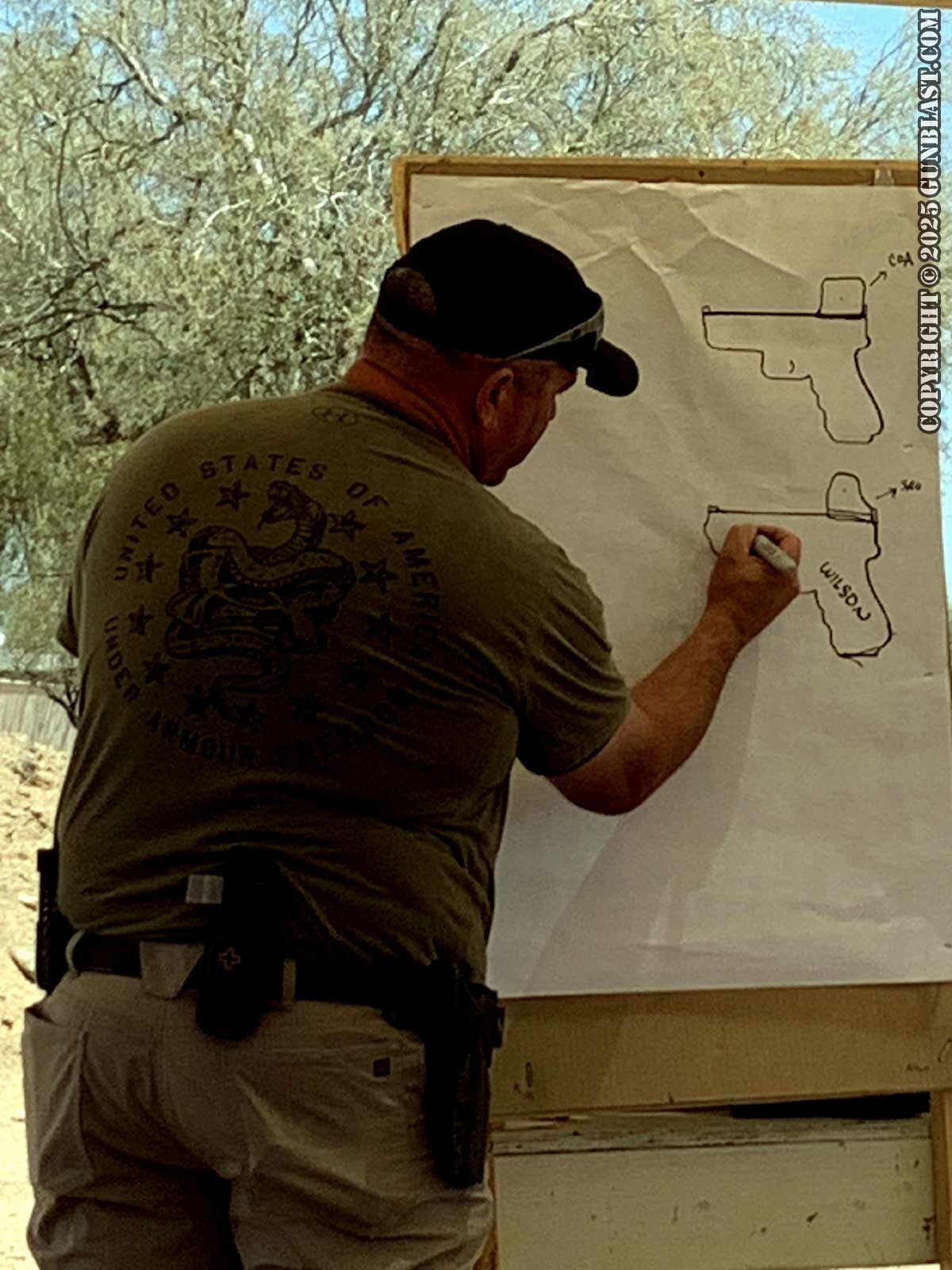 Once the pistols zeroed, and all shooters familiarized, we began to run drills for the next two and a half days following the USCCA Defensive Pistol Program (DPP). The labor of love of Steve Hendricks at USCCA, this is relatively new program introduced last year. In fact, I had the pleasure of being one of the very first students through the program in its very first course offered last year. DPP focuses on concealed carry and drills are to be done from concealment.
