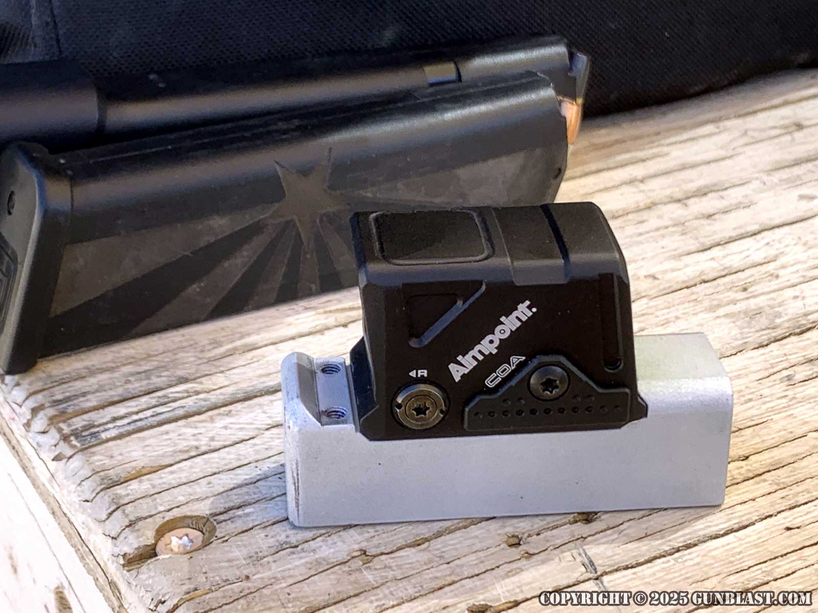 Introduced at SHOT Show in 2025, the new enclosed emitter Aimpoint COA red dot optic was designed for concealed carry pistols and is the next generation of pistol mounted optics. This miniaturized red dot optic is designed to be direct mounted using a proprietary cut, called the A-cut, allowing the housing to be snapped in place on its locking lugs, and then locking in the back with a screwed in wedge which also serves as a backup iron rear sight. Being directly mounted to the slide, the optic sits lower in the slide itself, not only resulting in the ability to use standard height sights, but also resulting in a smaller mechanical offset for point of impact to point of aim. In fact, almost all pistols shot in the class showed an offset of only about 3/4" at 3-5 yards. Another benefit is that the lower mounted optic helps shooters see their dot a little more easily and quickly.