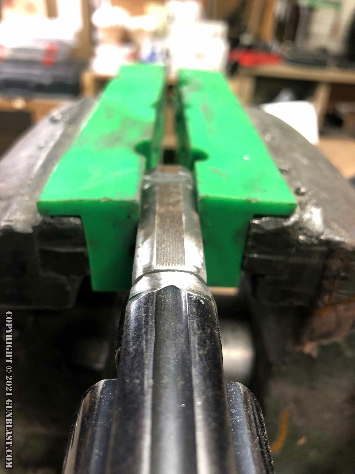 David Fink, of Fink's Custom Gunsmithing in Chino Valley, AZ would slabside the barrel, cut a dovetail for the front sight, crown and polish the barrel, and set the barrel cylinder gap to 0.005".