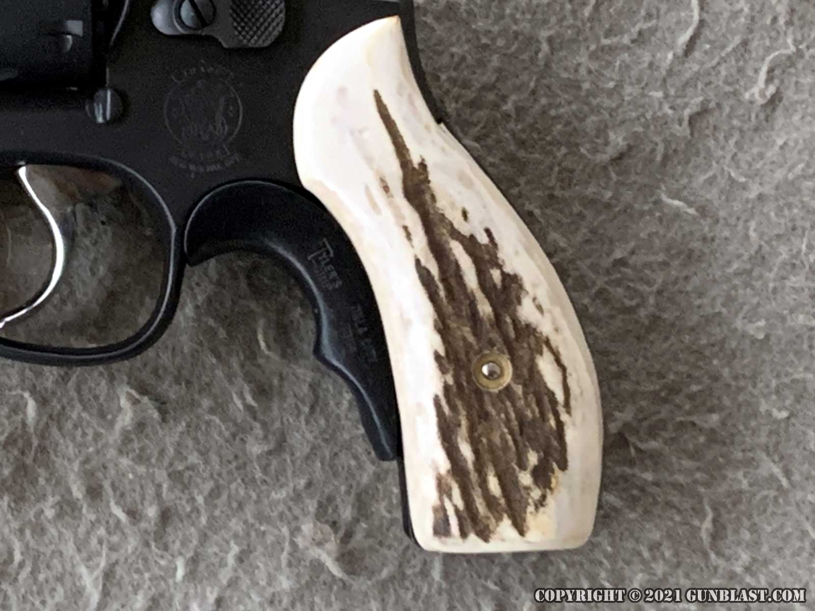 TX, would polish and refinish the gun, and engrave the Gunsite Raven logo on the sideplate. As an option, Bobby would also offer a custom fit set of stag grips.