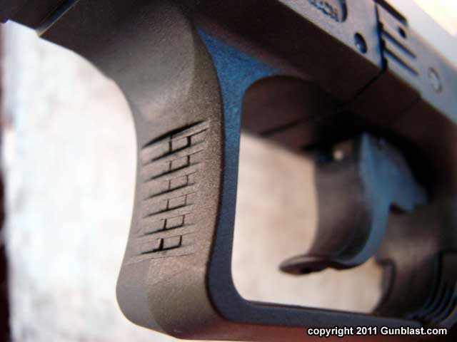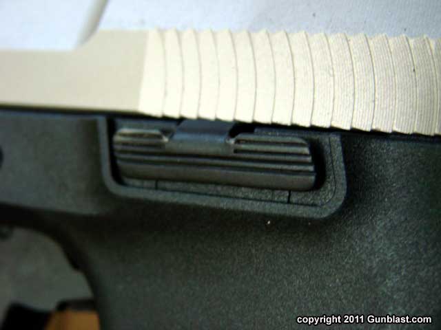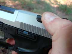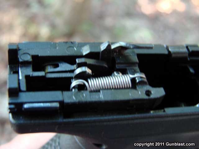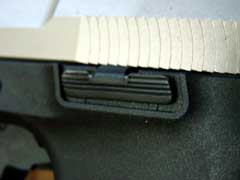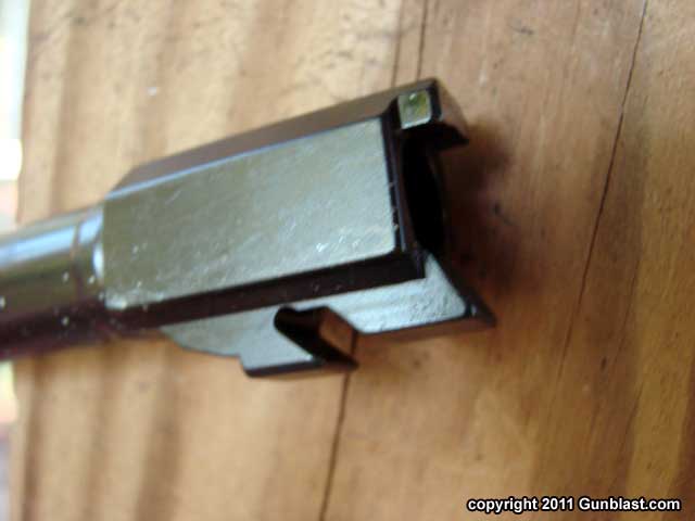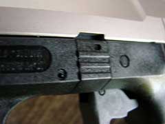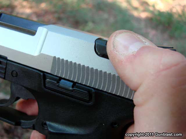 Atop the slide is a decocker, to undo the pre-cocked condition.